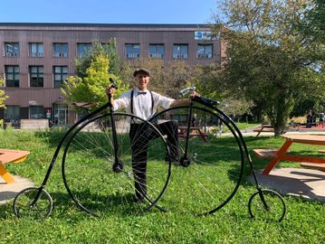Un Grand Bi ce n'est pas juste beau a voir c'est aussi tres intéressant a monter! Joignez le club sélect de braves gens qui ont réussi a maitriser ce vélo vieux de 140 ans. Challenge et réussite garantis! Lecons d'histoire et secrets antiques révélés a tous ceux qui ont fait le premier pas. Pratiquez et perfectionnez-vous en toute sécurité avec Boneshaker Xavier, instructeur chef!